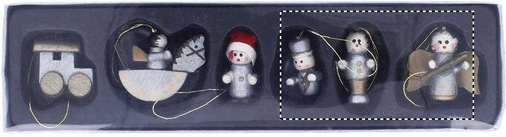 Komplekt 6 puidust jõulupuu riidepuud läbipaistva kaanega pappkarbis.
