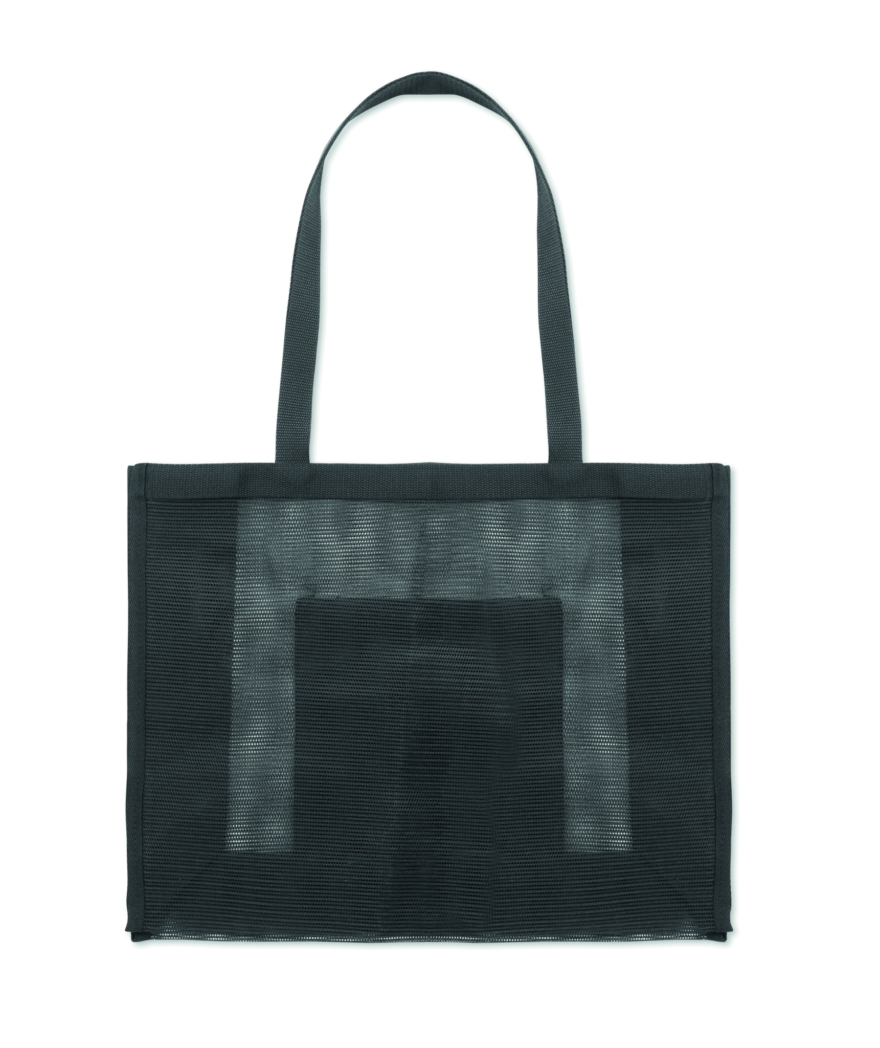 RPET võrgust ja 210D RPET-ist lühikeste sangadega ostukott. Suure avatud esitaskuga. Mahutavus 20 l, kandevõime kuni 10 kg.