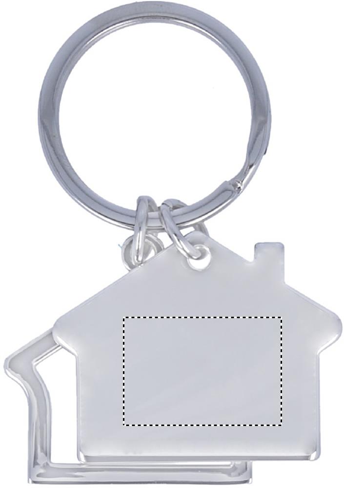 Majakujuline metallist võtmehoidja. Eraldi pakitud valgesse pappkinkekarpi.