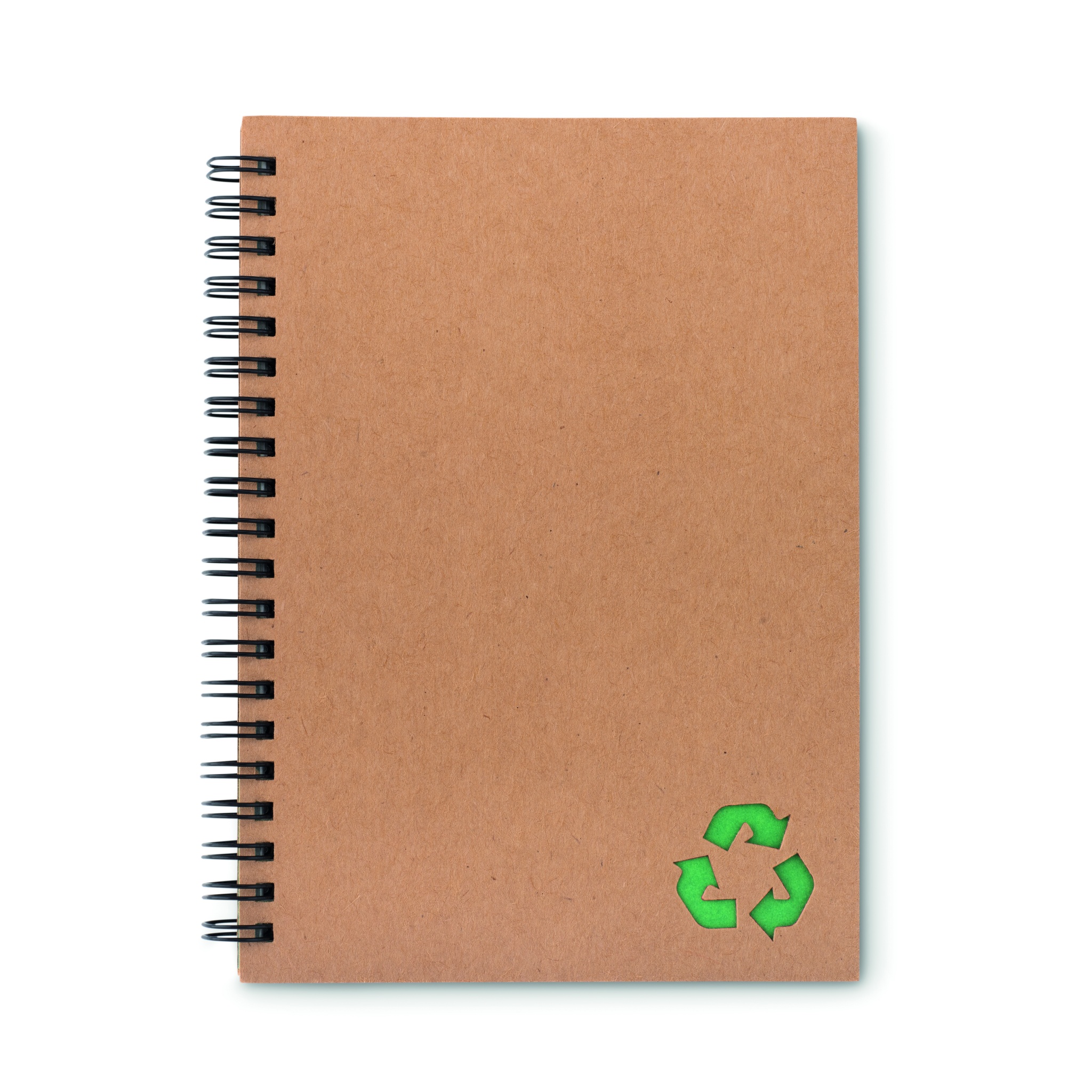 Taaskasutatud kartongist kaanega märkmik. Kahejuhtmeline. 140 joonega mineraalpaberilehte (70 lehte). Mineraalpaber on valmistatud kaltsiumkarbonaadist ja HDPE-st (polüetüleenvaigust), mida kasutatakse sideainena. See on veekindel ja rasvakindel.