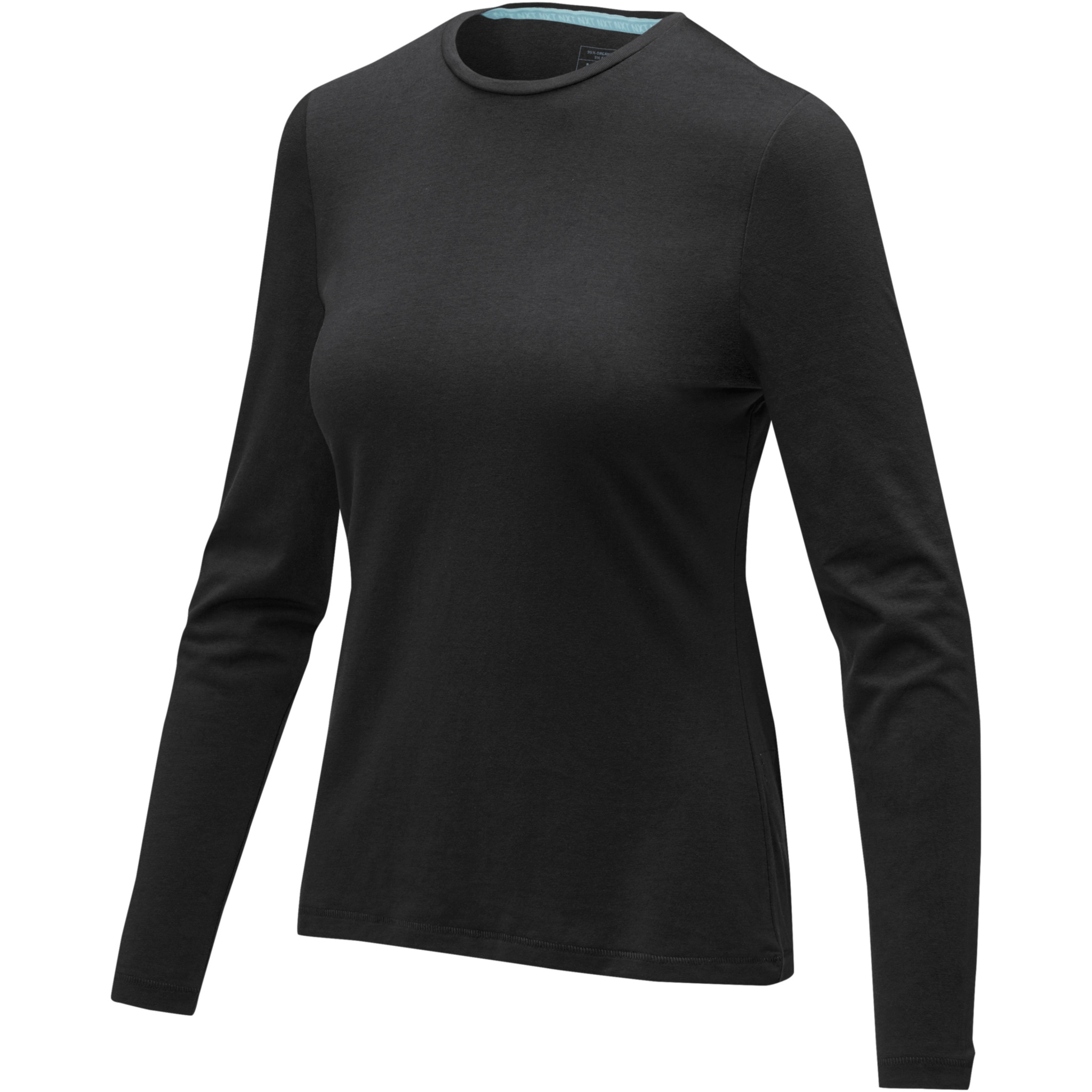 Ponoka pikkade varrukatega naiste orgaaniline T-särk, Täiesti must