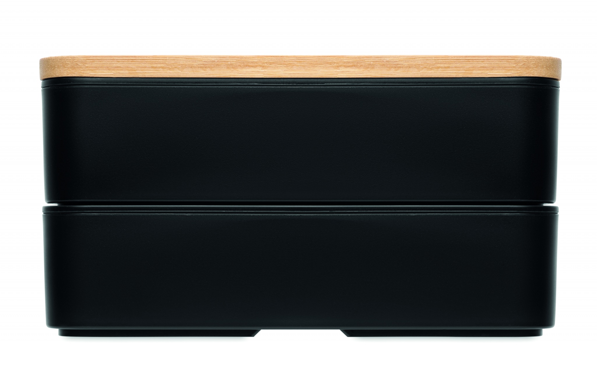 Kahekorruseline bambusest kaanega PP lõunasöögikarp koos 1 eemaldatava PP jagaja ja 3 söögiriistaga, millel on kinnitatav polüesterpael. Mahutavus 400ml (2x). Bambus on looduslik toode, ühe eseme värvis ja suuruses võib esineda väikesi erinevusi, mis võivad mõjutada lõppviimistlust.