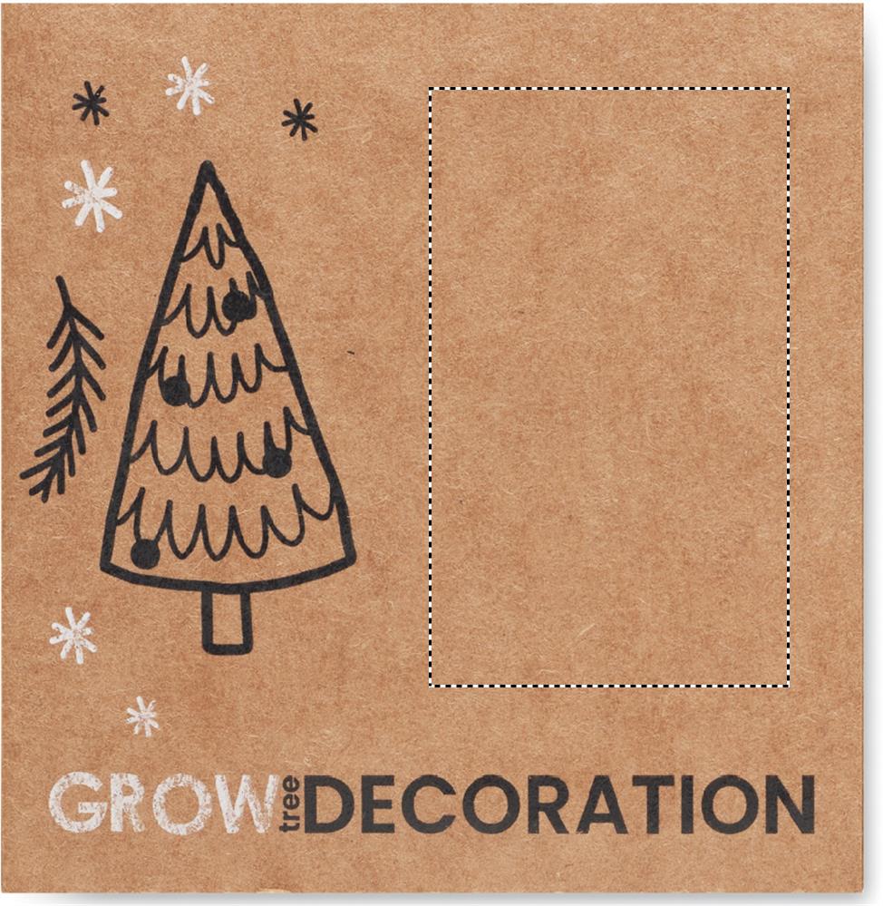 Puidust ümara kujuga dekoratiivne jõulukuul džuudist nööriga, lisatud juurde kuuseseemned. Pakend: kraftpaberist ümbrik. Valmistatud EL-is.