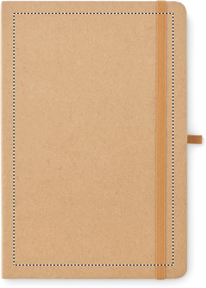 Pappkaanega A5 märkmik, 80 lehte taaskasutatud paberit (160 lehekülge), 25 lehte kleepuvaid märkmeid ja 25 memolehte. Elastne sulgemisrihm ja pliiatsi aas.