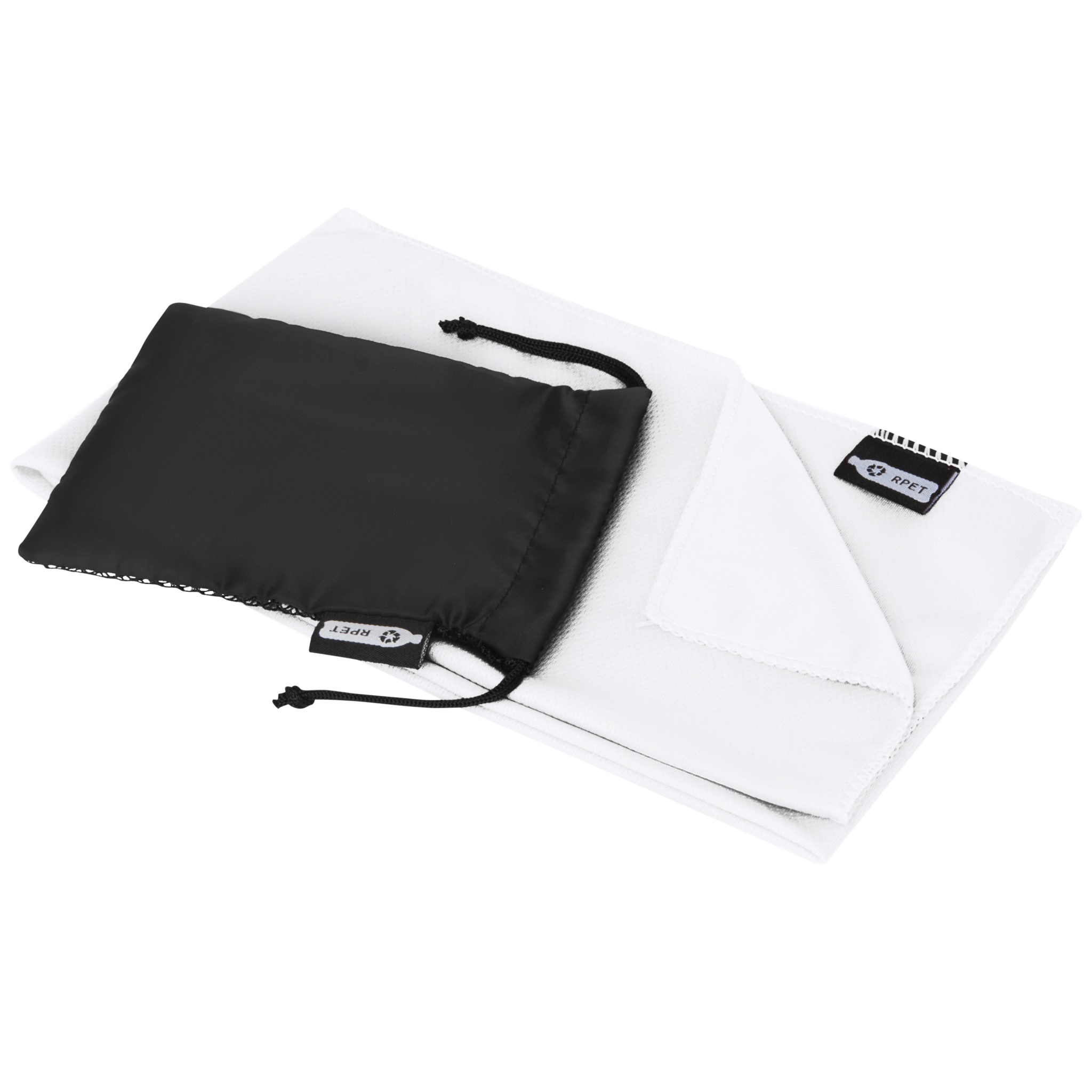 Kiiresti imenduv, kiiresti kuivav ja pestav jahutusrätik mõõtmetega 80 x 30 cm, mis on valmistatud taaskasutatud PET-st, et hoida jahedana treeningu või mis tahes välitegevuse ajal. Jahutusrätik tarnitakse 15 x 11,5 cm suuruses kotis, mis on samuti valmistatud taaskasutatud PET-st ja millel on hõlpsasti kaasaskandmine. Saadaval 5 värsket värvi. Kotil suur prindiala. Trükkimine võimalik ka jahutusrätikule endale.