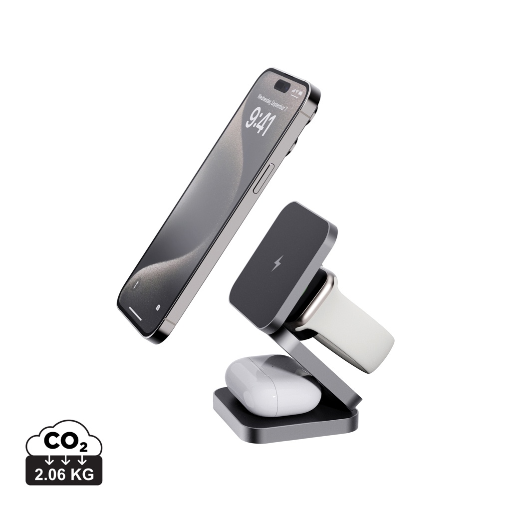 Logotrade firmakingitused pilt: Terra RCS taaskasutatud alumiiniumist kokkupandav kolm ühes 15 W laadija