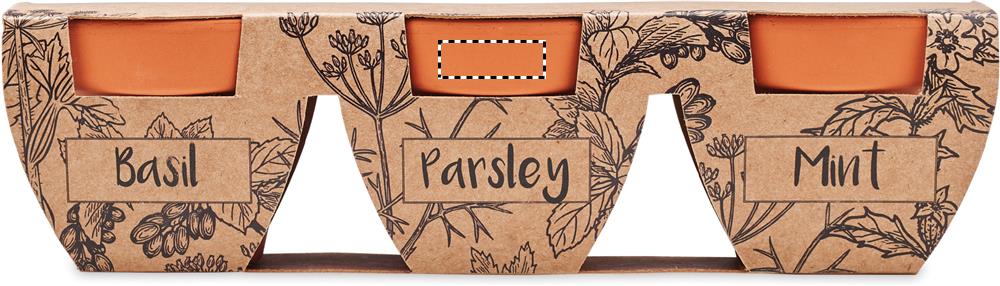 Komplektis 3 savist terrakotapotti, mis sisaldab 3 erinevat 3 erineva ürdi seemet: piparmünt, petersell ja basiilik. Valmistatud EL-is.