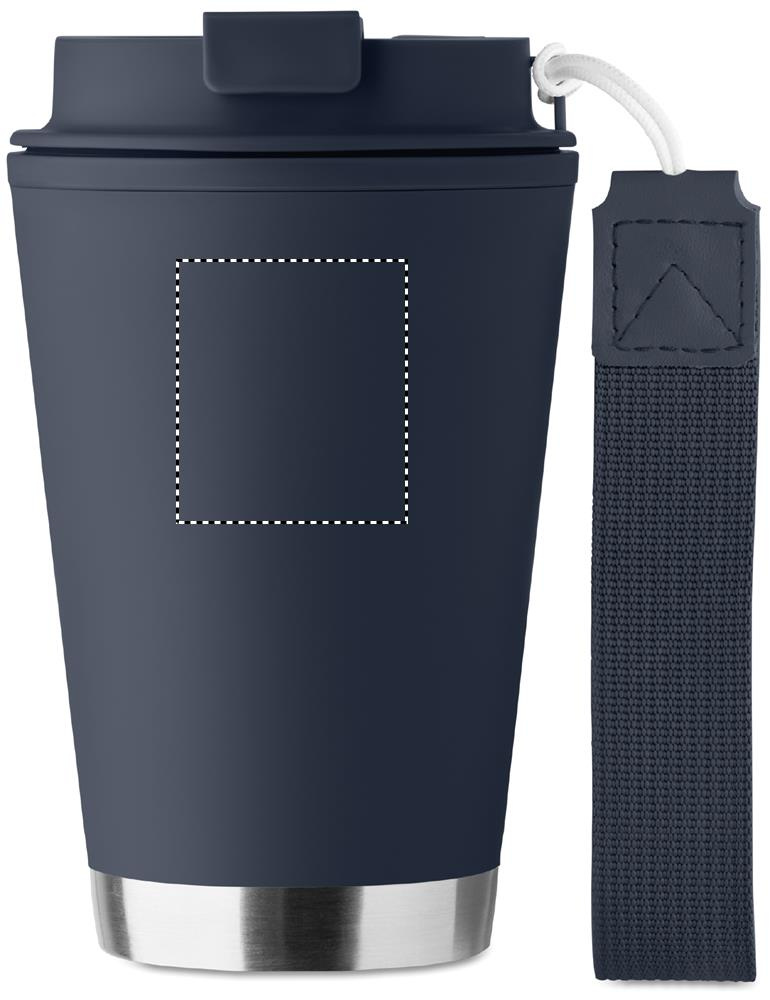 Must topeltseinaga termoskruus PP-st siseseinaga, taaskasutatud PP-st välisseinaga, taaskasutatud roostevabast terasest detailidega ja RPET-randmepaelaga. Mahutavus: 300 ml.