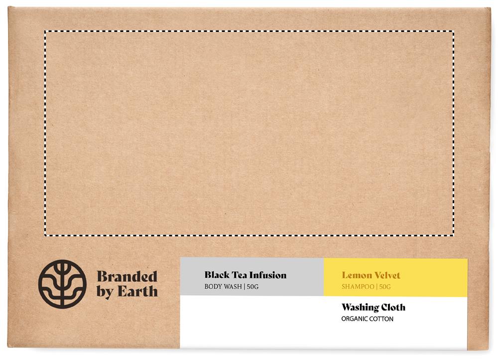 Unisex On the Go kinkekomplekt firmalt Branded By Earth. Sisaldab 24 vegan 4g kehapesuvahendit, šampooni ja orgaanilisest puuvillast pesulappi. Kõik tükid pakitud torusse. Esitatakse taaskasutatud paberist karbis. Valmistatud EL-is.