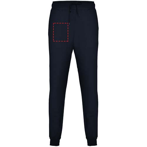 Urheiluhousut, joissa leveä säädettävä vyötärönauha, kiristysnyöri, tyköistuvat lahkeiden suut, vahvistetut saumat, uurretut sivutaskut ja tikattu kulmatasku. Irrotettava etiketti.