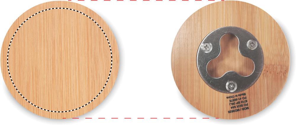 Bambuinen pullonavaaja/ lasinalunen. Luonnollisen materiaalin (bambu) vuoksi, tuotteiden värissä/ koossa saattaa olla erinäisyyksiä ja tämä voi vaikuttaa painatuksen lopputulokseen.