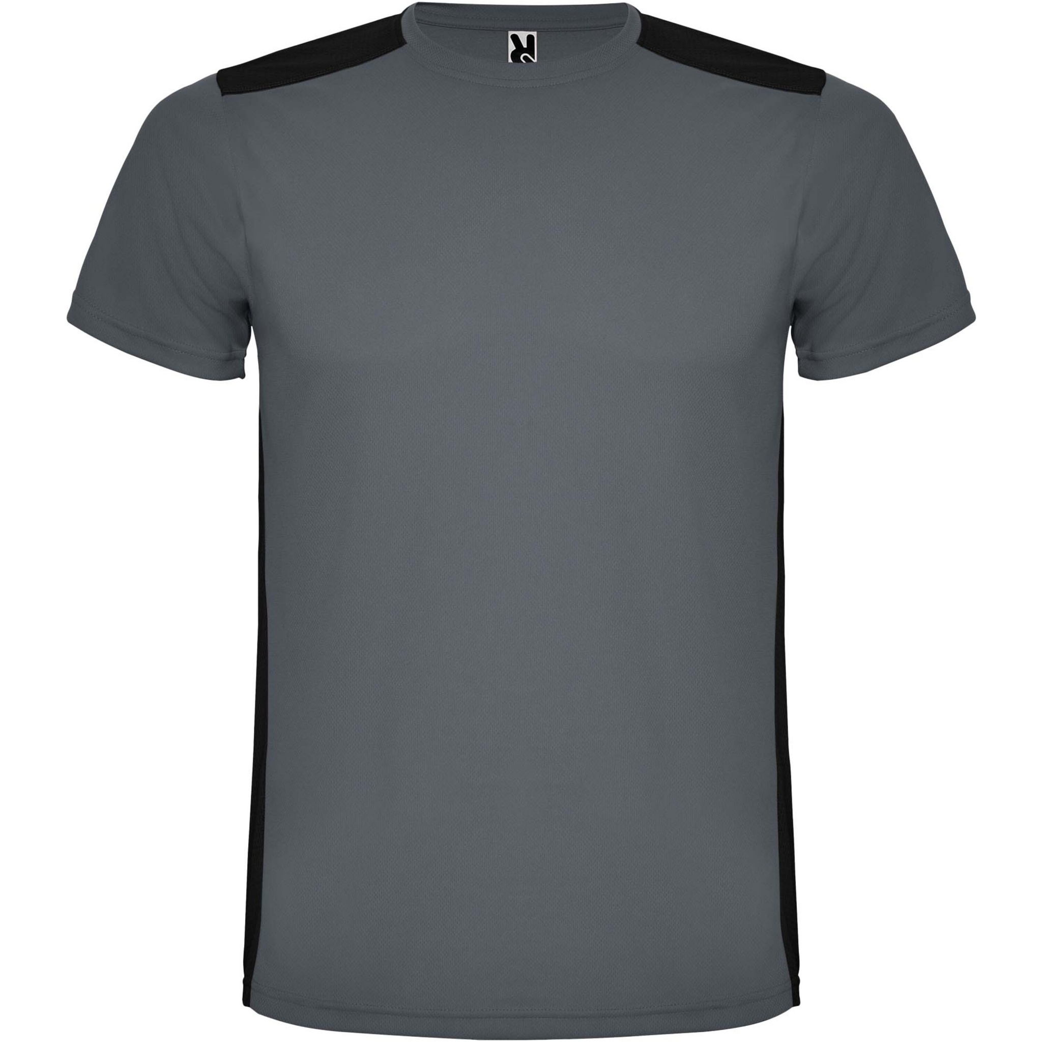 Helposti kuivuva, tekninen ja hengittävä kangas. Pyöreä kaula-aukko. Kahden polyesterikankaan yhdistelmä selässä ja olkapäissä. Bird's eye -kangas edessä ja hengittävä 3D-verkkokangas takana. Kangas, joka on suunniteltu imemään kosteutta. Sivuilla ja olkapäillä koristeellinen siksak-selkätikki. Selkäosa hieman pidempi. Irrotettava etiketti.