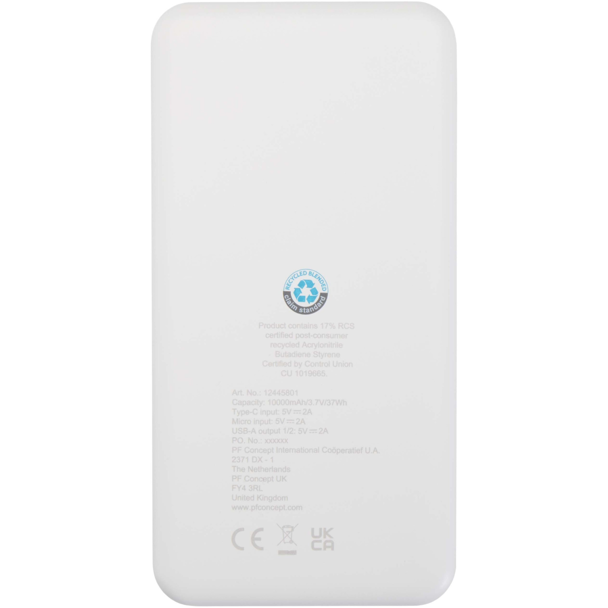Pysy ladattuna 10 000 mAh:n Intan-varavirtalähteellä, joka on valmistettu kierrätetystä muovista. Siinä on kaksi USB-A-lähtöporttia, Type-C-tulo-/lähtöportti ja micro-USB-tulo joustavia latausvaihtoehtoja varten. Tyylikkäässä laitteessa on LED-merkkivalo, joka näyttää lataustilan, mikä tekee siitä luotettavan virtalähteen koko päiväksi.