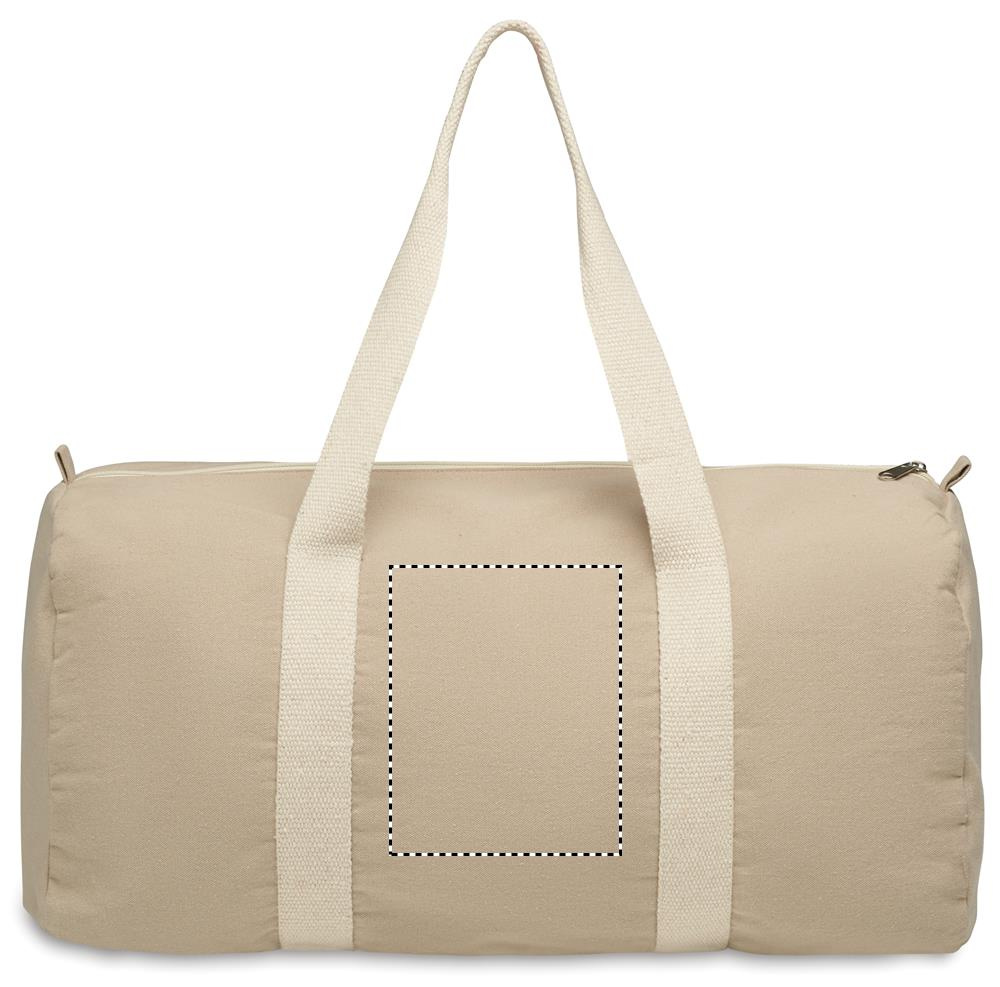 Duffle-, urheilu- tai matkalaukku, jossa on vetoketjullinen sivutasku ja vetoketjullinen sisätasku 320 g/m² kierrätyspuuvillaa (80 %) ja kierrätettyä polyesteriä (20 %) pitkällä kahvalla.