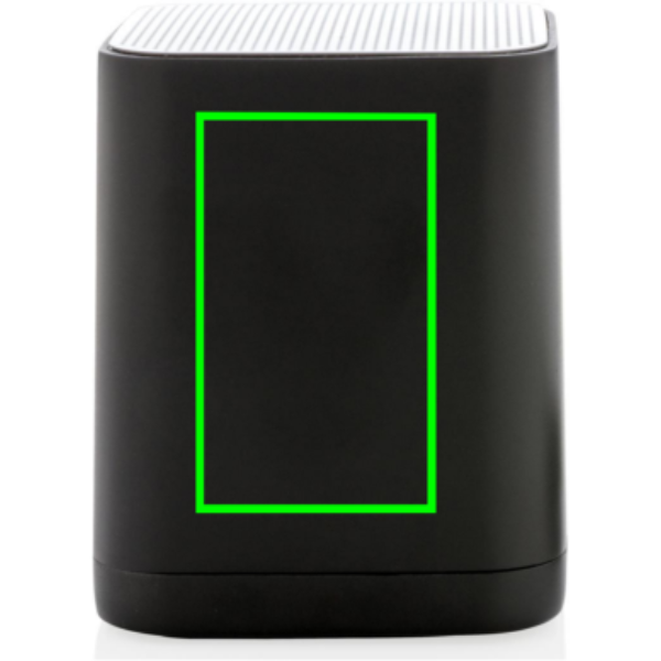 Langaton 3W kaiutin, joka voidaan räätälöidä logollanne ABS pinnalle. Logo valaistuu antaakseen maksimaalisen näkyvyyden brändillenne. Kaiutin käyttää BT 4.2:tä mahdollistaakseen hyvän yhteyden 10 metrin säteellä. Sisäänrakennettu 400 mAh akku mahdollistaa musiikin yhtäjatkoisen soittamisen 4 tuntia kertalatauksella ja uudelleenlataus kestää tunnin.
