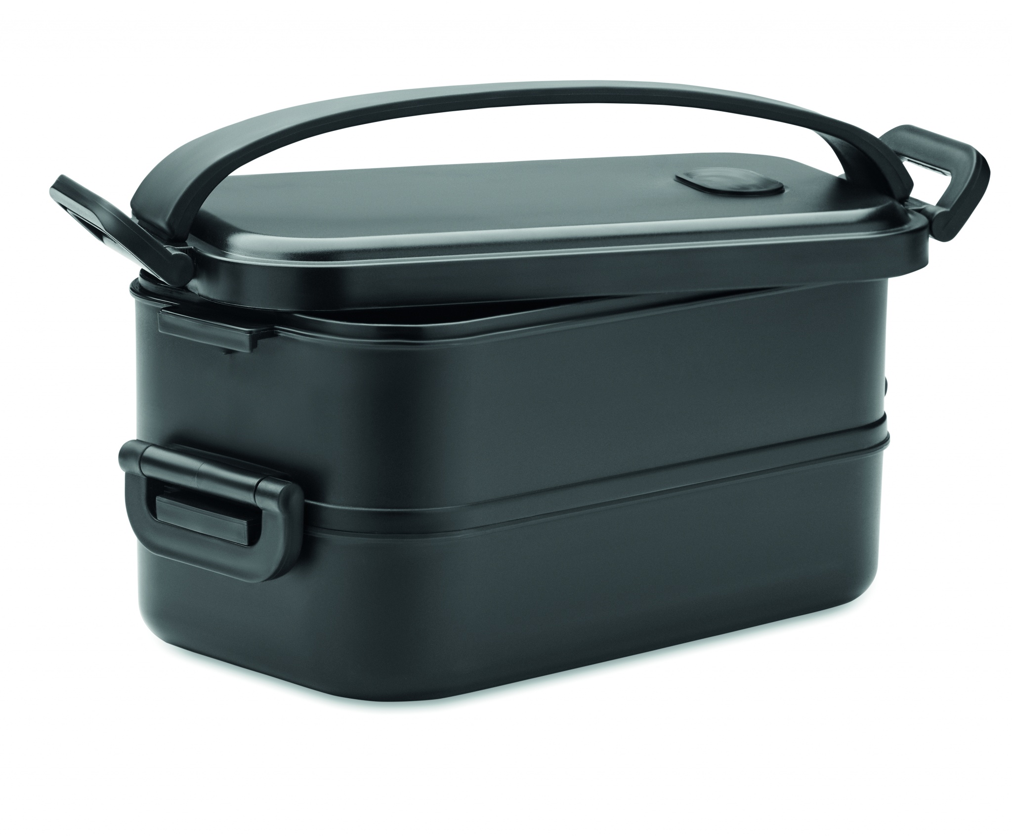 Kaksiosainen lounasrasia, valmistettu kierrätys PP:stä. Laatikossa on jakolaatikko, sivusoljet ja ilmatiivis kansi. Tilavuus: 800 ml (2x).