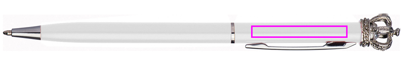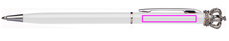 Ohut metallikuulakynä, jossa sininen kirjoitustäyttö. Kruunu ja pieni lasitimantti tekevät tästä kynästä ainutlaatuisen. Kaivertamme logosi klipsien oikealle puolelle.