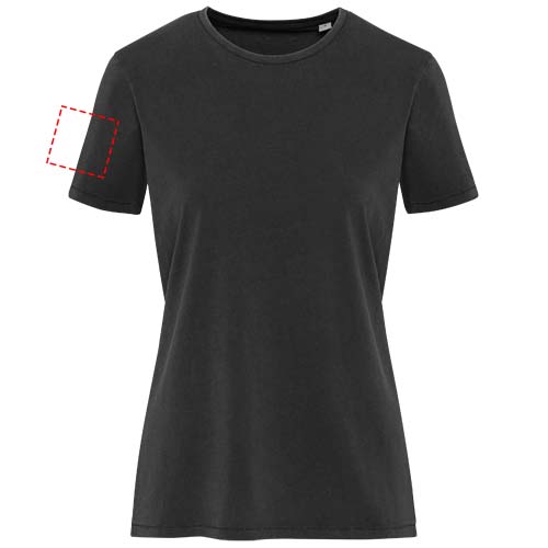 Lyhythihainen naisten Nanaimo-t-paita, joka on valmistettu 160 g/m²:n rengaskehrätystä puuvillasta, sopii täydellisesti mihin tahansa tilaisuuteen ja on mukava lisä mihin tahansa vaatekaappiin. Entsyymipesty pinta antaa vaatteelle ylimääräistä pehmeyttä ja rennon tunteen, ja rengaskehrätty puuvilla varmistaa vahvemman ja sileämmän langan, mikä parantaa kestävyyttä ja takaa korkealaatuisen brändäyksen. Sivusaumat takaavat erinomaisen istuvuuden. Vahvistetut olkapäät säilyttävät muotonsa ja istuvuutensa myös pitkäaikaisen käytön jälkeen. Jokaisessa kappaleessa on Aware™-merkki, joka varmistaa sen vastuullisen tuotantoprosessin täyden läpinäkyvyyden.