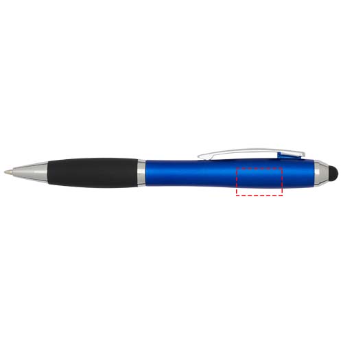 Kierrätetystä muovista valmistetussa kierrettävässä Nash-kuulakärkikynässä on tyylikäs, kaareva muotoilu, helmiäishohtoinen runko hopeisilla reunoilla, musta kosketuskynä ja pehmeä kädensija mukavaa kirjoittamista varten. RCS-sertifioidusta, kierrätetystä ABS-muovista valmistettu kuulakärkikynä auttaa vähentämään uusien materiaalien käyttöä kestävyydestä tinkimättä. Takana on rABS-logo, joka korostaa tuotteen kierrätysmateriaalia. Musteen väri: Sininen. Kärjen paksuus: 1,0 mm. Kirjoituspituus: 500 metriä.