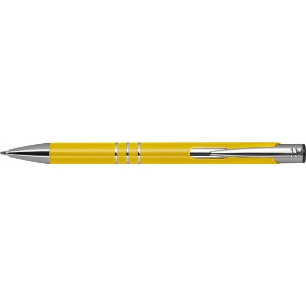 Täysin lakattu metallikuulakynä, jossa on 3 koristerengasta ja suuri kapasiteetti sinikirjoituksella. Logosi kaiverretaan leikkeen oikealle puolelle.