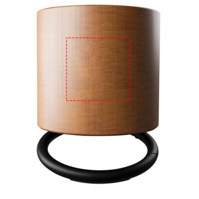 Vaahterapuinen 3 W:n Bluetooth-kaiutin kaiverretulla logolla ja kahdella äänilähdöllä, joiden ansiosta äänenlaatu on verraton tämän kokoiseksi kaiuttimeksi. Rengaskaiutinta kallistamalla äänen voi suunnata haluttuun suuntaan. Sisäänrakennettu mikrofoni and neuvottelupuhelutoiminto. Kapasiteetti: 500 mAh – 3,7 V akku. Taajuus: 50 Hz – 20 KHz. Äänilähtö: 1 x 3 W. Impedanssi: 4 Ω. Bluetooth® 5.0. Nettopaino: 100 grammaa. Koko: ∅ 50 mm x 45 mm. Toimitetaan lahjapaketissa, jossa on magneettinen sulkemismekanismi ja joka on valmistettu kierrätetystä paperista.