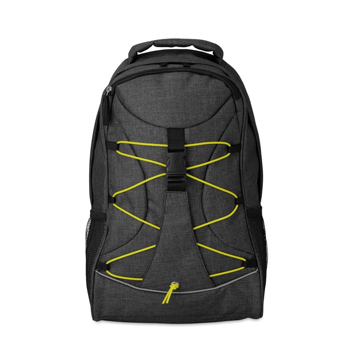 600D 2 sävyinen polyesteri reppu, pimeässä hohtavilla kontrasti nauhoilla ja sivuilla verkkotaskut.