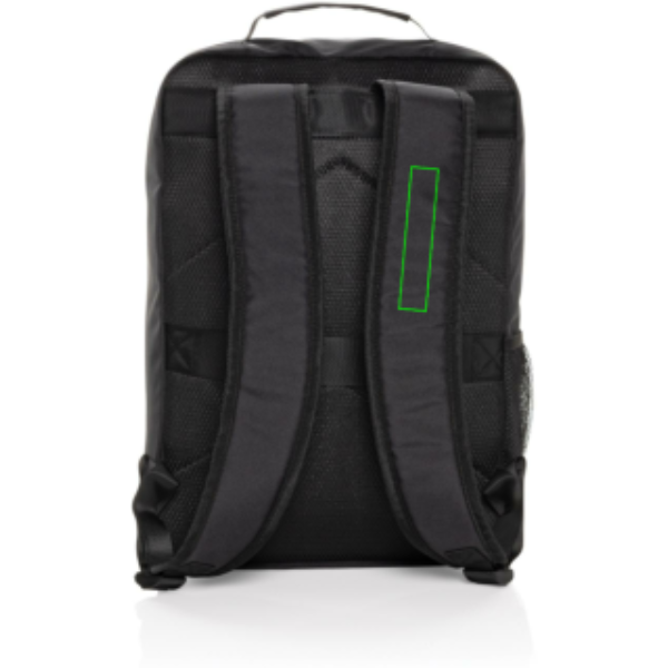 Swiss Peak Aware™ RPET Essential 15,6 tuuman kannettava tietokone -reppu on suunniteltu vastaamaan jokapäiväisiä liiketoimintatarpeitasi. Tässä 100 % rPET:stä valmistetussa tyylikkäässä ja kestävässä repussa on vetoketjullinen päälokero, jossa on oma kannettava tietokoneosio, johon mahtuu nykyaikaiset 15,6-tuumaiset kannettavat tietokoneet, sekä sisäpuolella oleva verkkovetoketjutasku ja hoitotarra. Säädettävät olkahihnat, joissa on soljet, takaavat mukavan istuvuuden, kun taas vetoketjullinen etutasku ja juomapidikkeellinen sivutasku tarjoavat lisää säilytystilaa. Laukussa on myös kätevä matkatavarahihna selässä ja verkkokahva ylhäällä helppoa käsittelyä varten. Swiss Peakin tummansävyinen logo ja ensiluokkaiset Swiss Peak -vetoketjut viimeistelevät sen ammattimaisen ulkonäön.Valmistettu kierrätetystä polyesteristä, johon on upotettu AWARE™-merkkiaine. Jokaisen AWARE™-merkinnällä varustetun tuotteen tuotosta 2 % lahjoitetaan Water.orgille. PVC-vapaa.