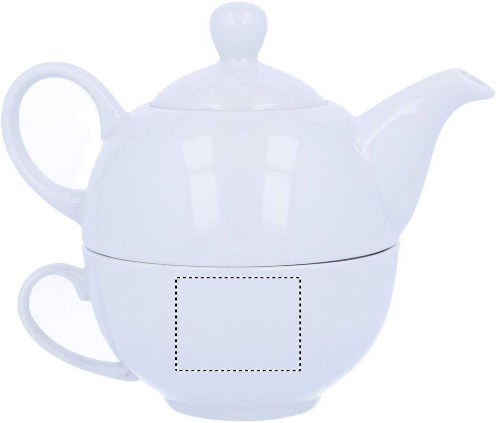 Teesetti sisältää 400 ml teekannun ja valkoisen keraamisen kupin, pakattuna mustaan lahjapakkaukseen. Tampopainatus kestää vain käsinpesun, keraaminen painatus on konepesun kestävä.
