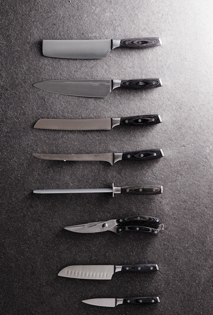 Valmistettu kestävästä saksalaisesta teräksestä käyttäen optimaalista hiilen, kromin, molybdeenin ja vanadiumin seosta. Seossuhde on saksalaisille ja sveitsiläisille veitsille tyypillinen.