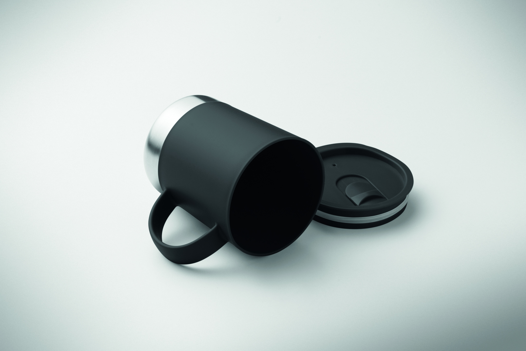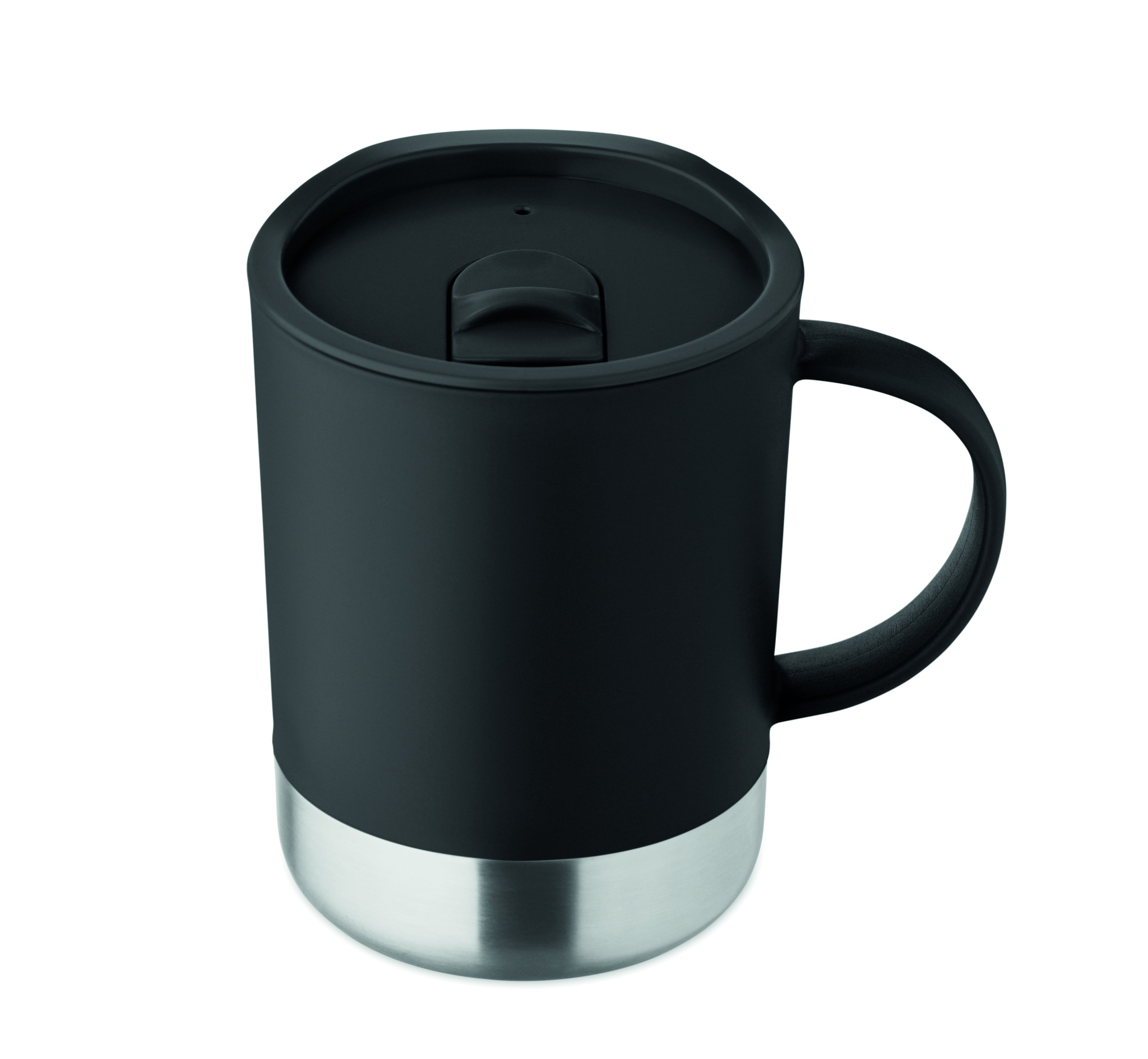 PP-muki, jossa on kierrätetystä ruostumattomasta teräksestä valmistettu pohja (90 % kierrätettyä ruostumatonta terästä ja 10 % ruostumatonta terästä) ja PP-liukukansi. Tilavuus: 300 ml.