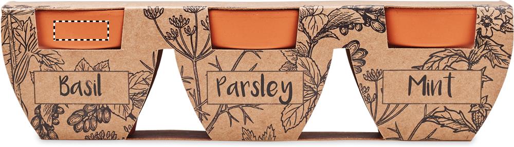 3 osainen saviterrakotta ruukkusarja, sisältää 3 erilasita yrttisiementä, basilika, minttu ja persilja.