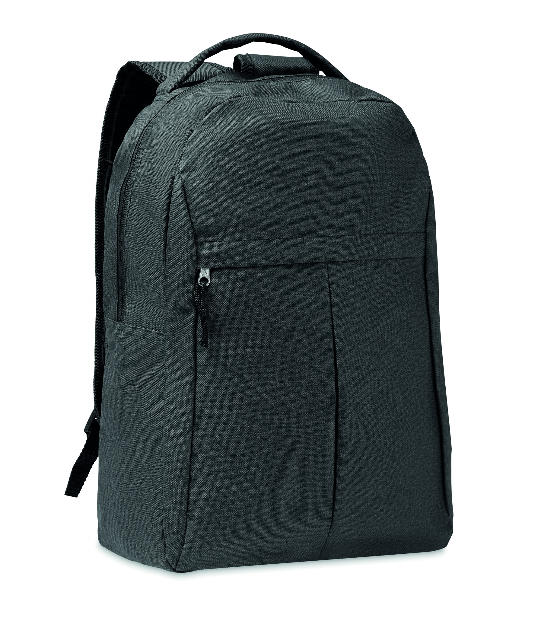 Kuprinė iš 600D RPET 2 tonų poliesterio su išorine kišene su užtrauktuku ir tinkleline kišene šone.