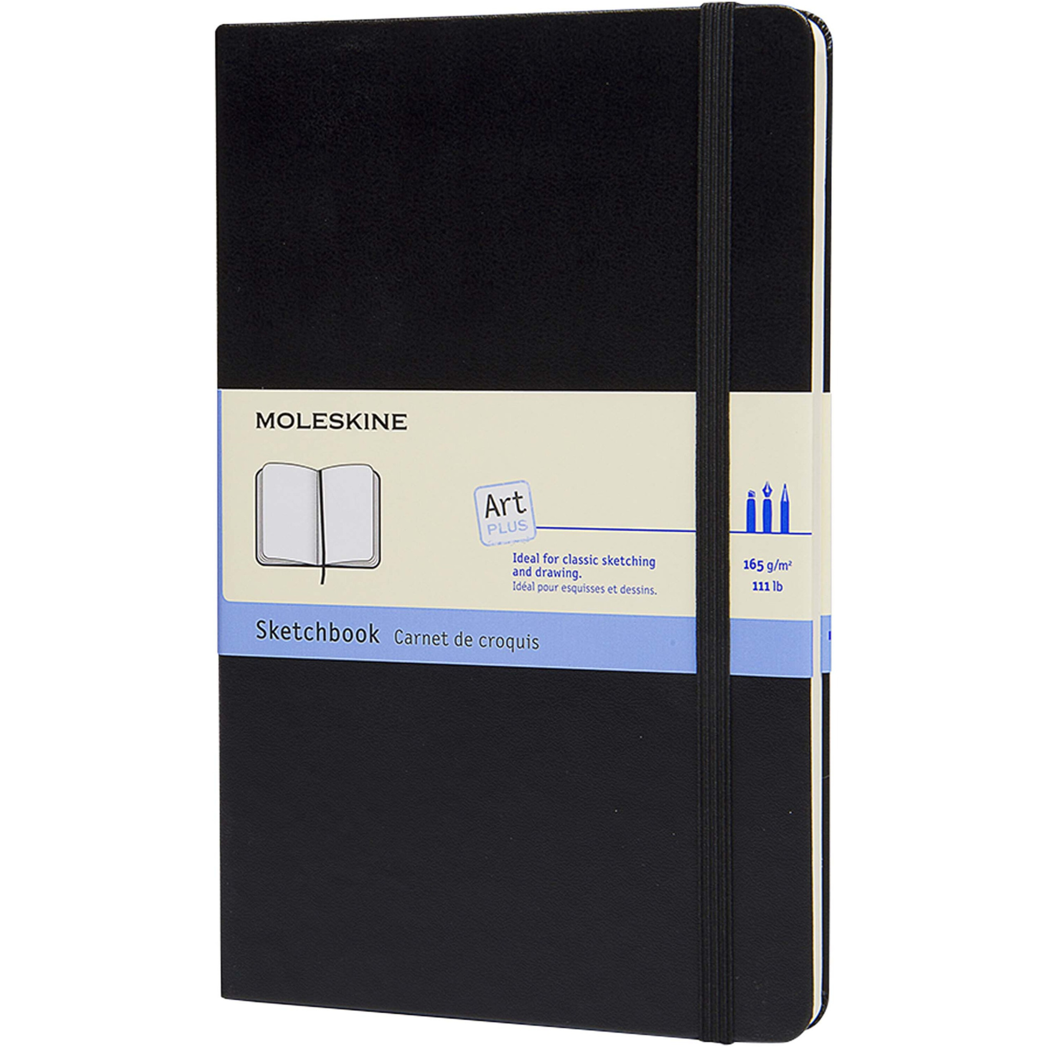 Didelė „Moleskine“ eskizų knygelė yra įrišta kartonu, suapvalintais viršeliais ir pagaminta iš aukščiausios kokybės nerūgštaus popieriaus. Eskizų knygelėje yra skirtukas, elastinis užsegimas ir išskleidžiama vidinė kišenė, kurioje yra „Moleskine“ istorija.