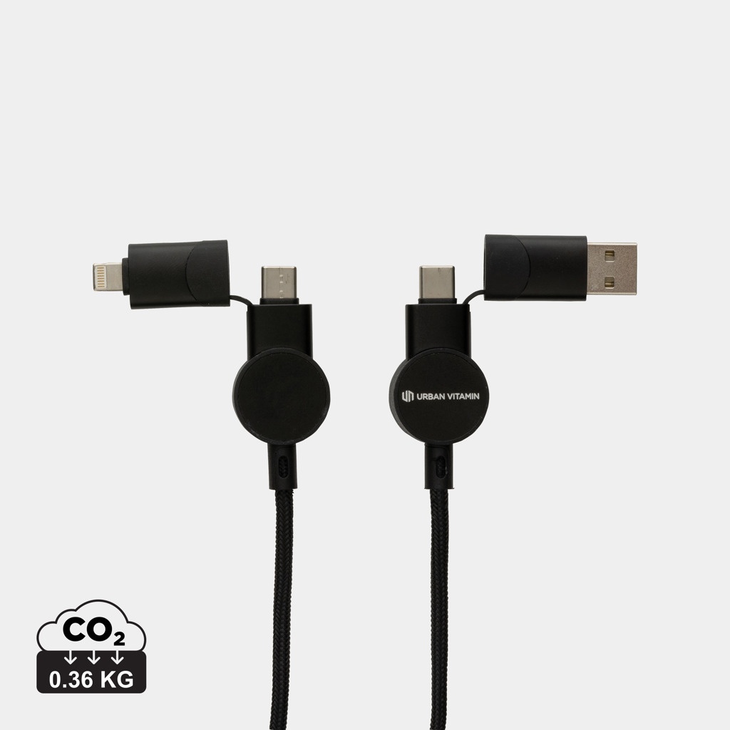 Visada įkraukite naudodami didžiausią įmanomą įkrovimo greitį naudodami Oakland greitojo įkrovimo laidą. Pagaminta iš sertifikuotų perdirbtų medžiagų. Korpusas pagamintas iš 100 % RCS sertifikuoto perdirbto TPE plastiko, o vielos iš 100 % perdirbtos TPE vidinės medžiagos ir 100 % perdirbto PET išorinio sluoksnio. RCS (Recycled Claim Standard) yra standartas, skirtas patikrinti perdirbto produkto turinį visoje tiekimo grandinėje. RCS yra standartas, naudojamas, kai dalis gaminio pagaminta iš perdirbtų medžiagų. 120 cm laidas turi 5 skirtingas jungtis: USB C in, USB A in, Type C out, IOS out ir micro USB out. Tai taip pat leidžia naudoti laidą su C tipo išvesties įrenginiais, kurie yra naujesnės kartos telefonuose ir „Macbook“ kompiuteriuose. Kabelis taip pat turi USB A išvesties įvesties parinktį, todėl gali įkrauti bet kurį įrenginį iš bet kurio išvesties šaltinio. Maksimali srovė nuo C tipo iki žaibo 18W. Maksimali srovė nuo C iki C tipo 45W. „Urban Vitamin“ gaminiai gaminami be PVC ir supakuoti į plastikines sumažintas pakuotes.