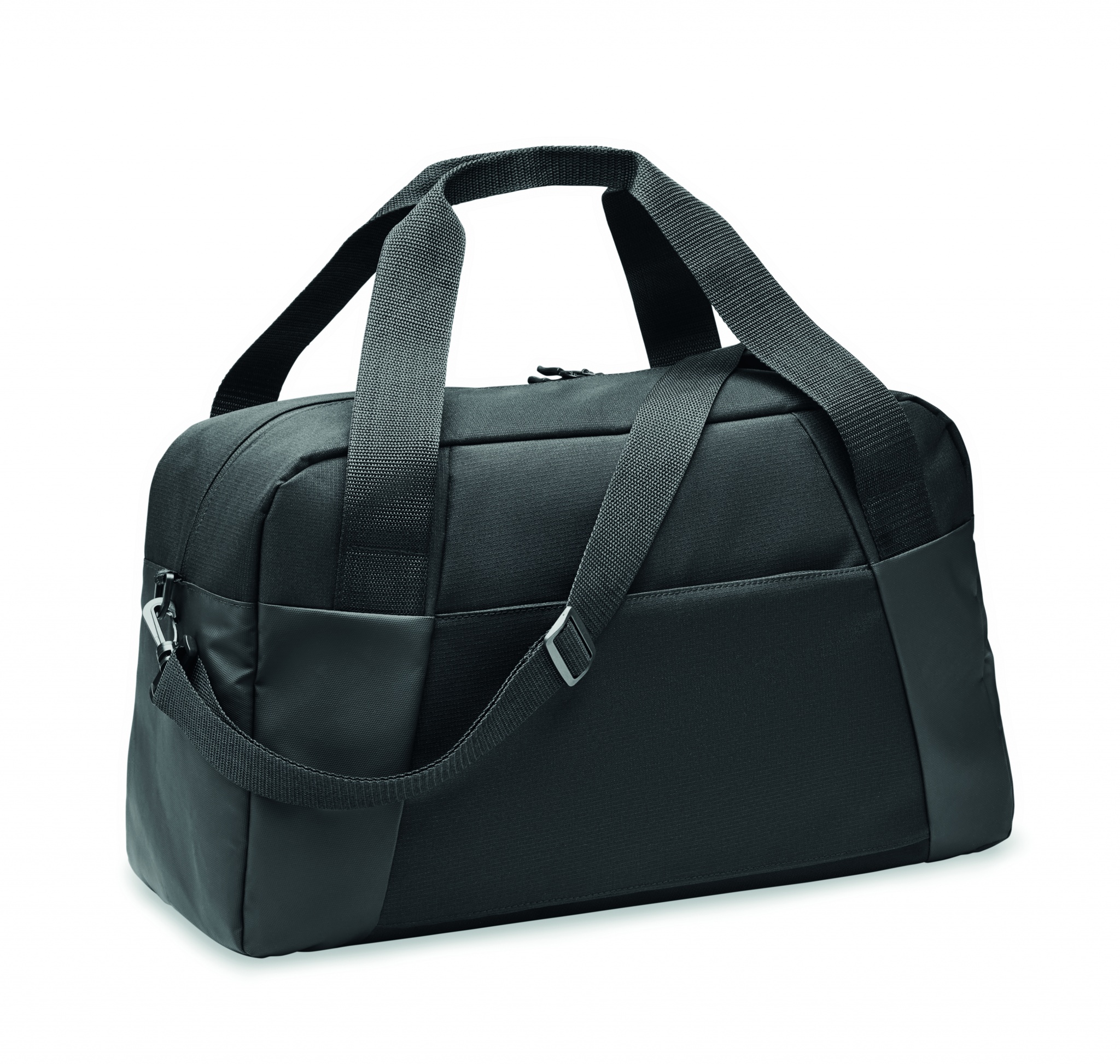 Ceļojumu vai sporta soma 300D ripstop ar PU detaļām ar rāvējslēdzēja priekšējo kabatu. Tam ir iekškabata un 2 mazi polsterēti nodalījumi. Ratiņu turētājs aizmugurē.