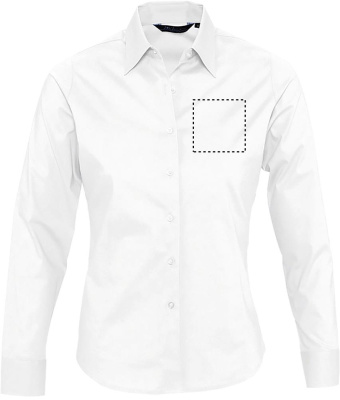 SOL'S EDEN sieviešu krekls 140g. Izgatavots no kokvilnas elastāna, ar cieši pieguļošu piegriezumu, tas nodrošina patīkamu gludinātu izskatu un komfortu. Ļoti moderns produkts. Pieguļošs piegriezums. Garas piedurknes. Apkakle ar vienu pogu. Regulējamas aproces ar 2 pogām un iesietu šķēlumu. 7 tonis pret toni pogu plāksne. Priekšējās un aizmugurējās šautriņas. Auduma detaļas: 97% kokvilna - 3% elastāns. OEKO-TEX®. Pārdod tikai ar apdruku.