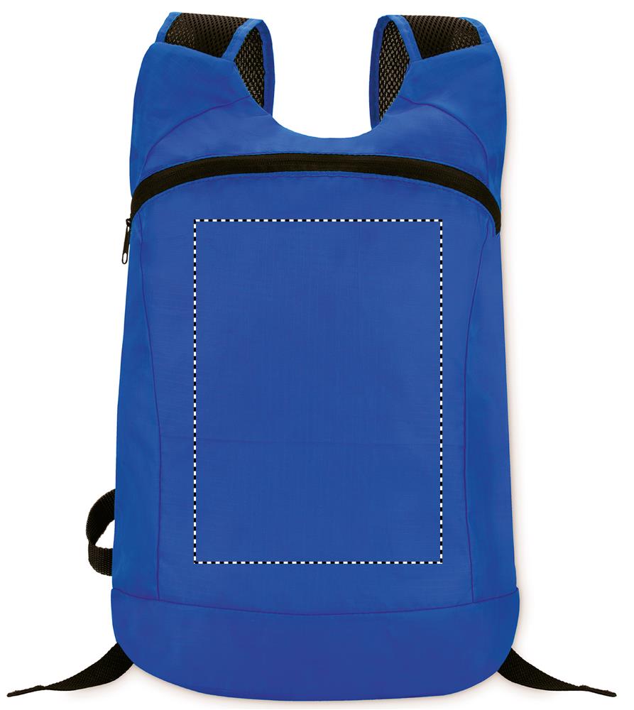 Salokāma sporta mugursoma no ripstop poliestera ar rāvējslēdzēju priekšpusē, tīklveida plecu siksnu un noņemamu maisiņu.