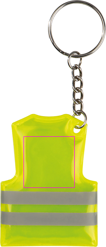 Брелок в виде жилета безопасности со светоотражающими полосами. Мы печатаем ваш логотип поверх полос.