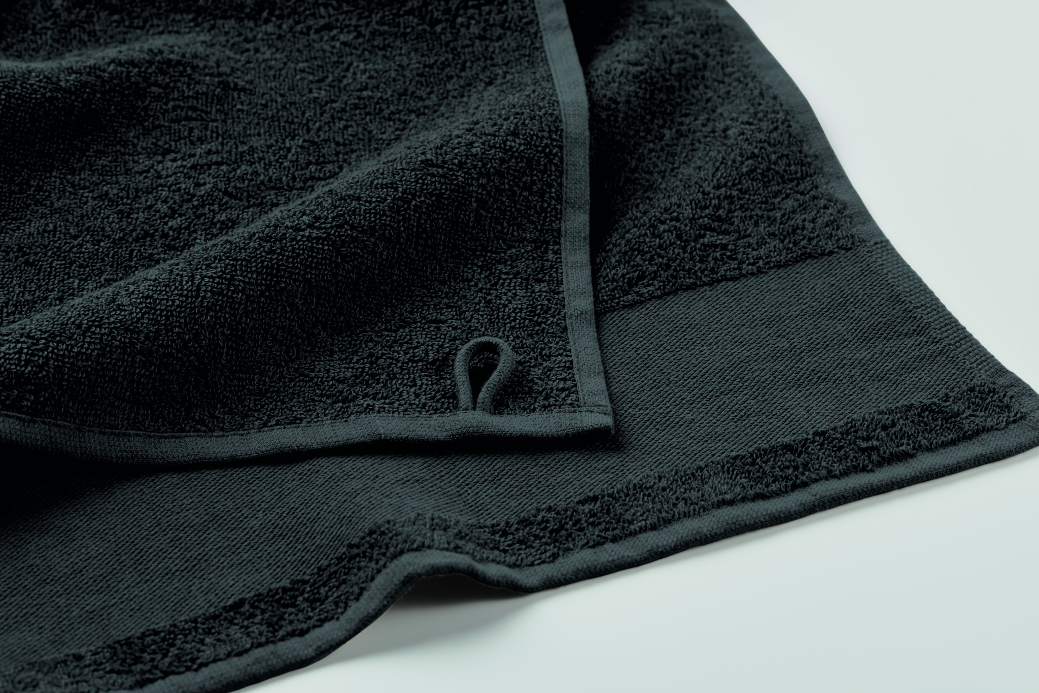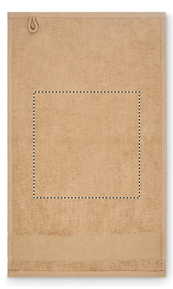 Guest towel made of 100% cotton, 380 gr/m² fabric with cotton hanger loop. Soft and absorbent design. Size 30 cm x 50 cm.