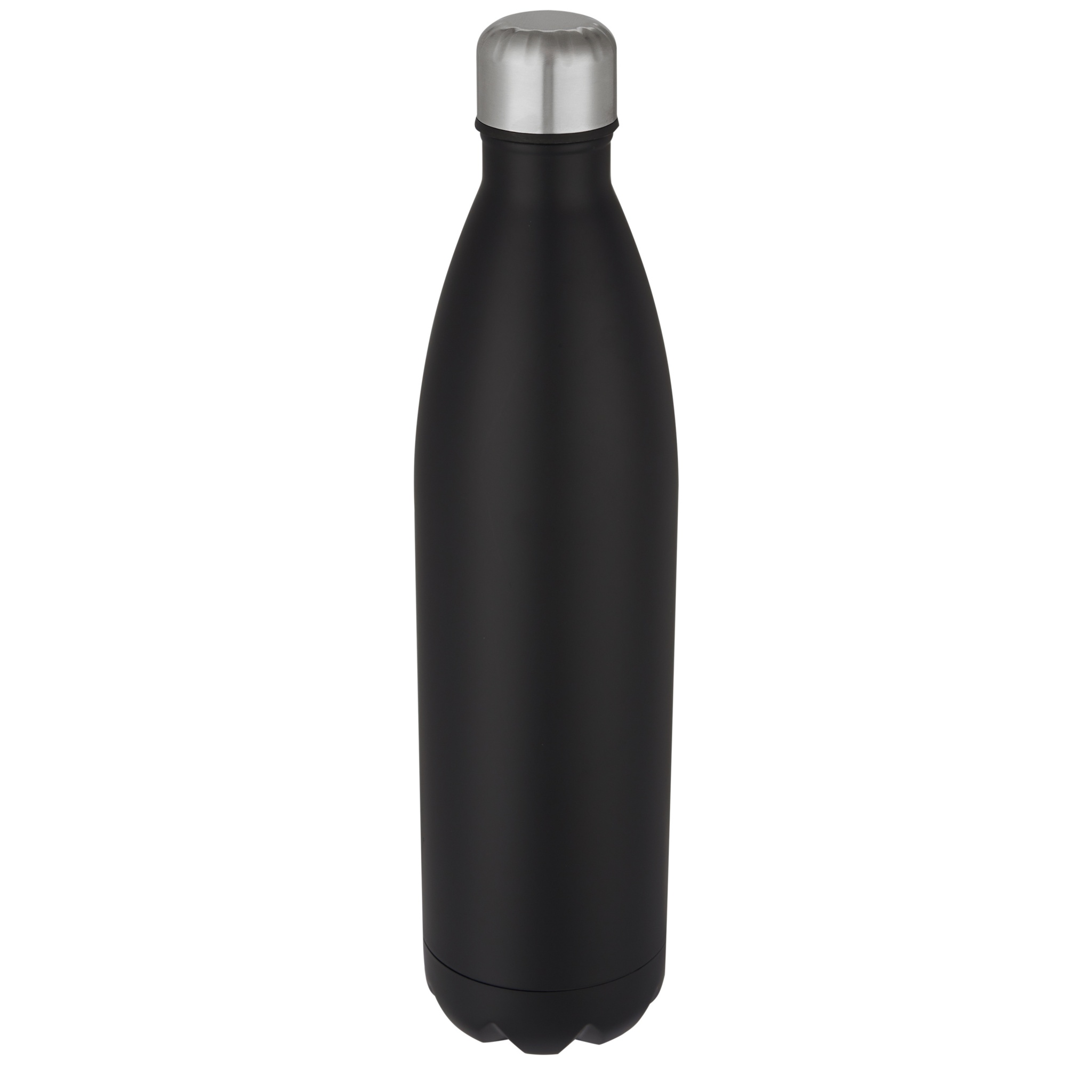 Large vacuum insulated stainless steel bottle with an iconic design. The insulated 18/8 stainless steel keeps drinks hot or cold for several hours. BPA-free, tested and approved under German Food Safe Legislation (LFGB). Tested and approved for phthalates content according to REACH regulations. Volume capacity is 1 litre. Hand wash recommended. Presented in a recycled cardboard gift box.