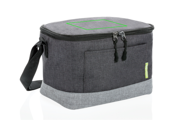Вместимость 6 банок, достаточно места для хранения еды и напитков. Дополнительные функции включают передний карман и плечевой ремень. Изготовлен из экологически чистого RPET. Зарегистрированный дизайн® Внешняя часть: 100% 600D меланжевый RPET / Подкладка: 100% PEVA