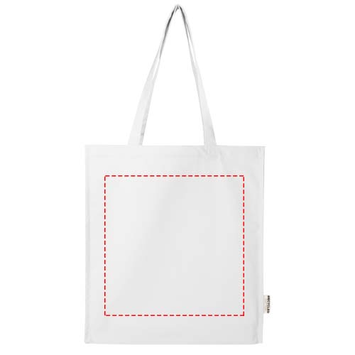 Эко-сумка Florida с о вставкой из 100% переработанного хлопка, сертифицированного согласно GRS, плотностью 270 г/м², станет более ответственным и долговечным выбором для ваших повседневных нужд. Благодаря вместимости до 14 литров и ручкам длиной 30 см он идеально подходит для удобной переноски продуктов, книг или повседневных вещей.