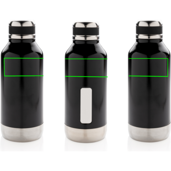 Герметичная бутылка с вакуумной изоляцией и откручивающейся крышкой. С уникальным расположением логотипа спереди. Внутренняя часть из нержавеющей стали 304 и внешняя часть из нержавеющей стали 201 сохраняют напитки горячими в течение 5 часов и холодными в течение 15 часов. Объем: 500 мл.
