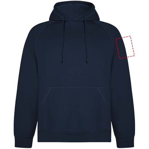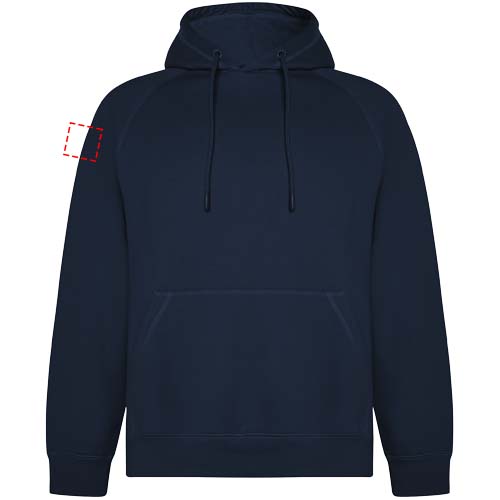 Худи унисекс с капюшоном из органического хлопка и переработанного полиэстера. Карман-кенгуру. Капюшон с подкладкой из одинарного трикотажа, круглым шнурком для регулировки и обшитыми люверсами. Манжеты и пояс из трикотажа в рубчик 2x1. Съемная этикетка. Индивидуальная упаковка из переработанного материала.