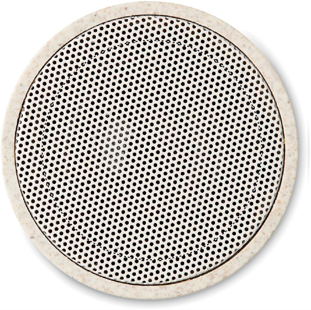 Колонка беспроводная в корпусе из смеси пшеничной соломы (35%) и ABS (65%) с резиновым покрытием и светодиодной индикацией. Батарейка в комплекте. Выходные данные: 3 Вт, 3 Ом и 5 В. Время игры ок. 2ч.