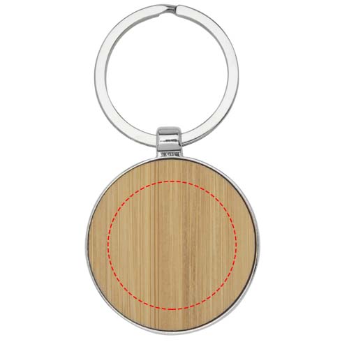 Круглый брелок премиум-качества из бамбука с металлическим корпусом из цинкового сплава, поставляемый в коричневой упаковке из шрифтовой бумаги. Диаметр брелка составляет 4 см. Подходит для лазерной гравировки.