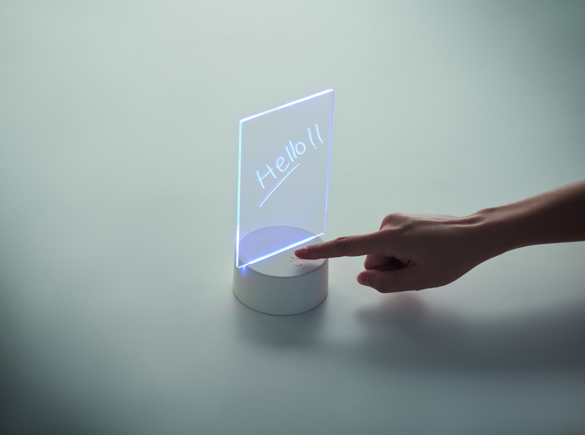 Light-up LED memo board with colour changing light and erasable white marker. Features acrylic board and aluminium base. Battery powered, requires 3 x AAA batteries (not included).