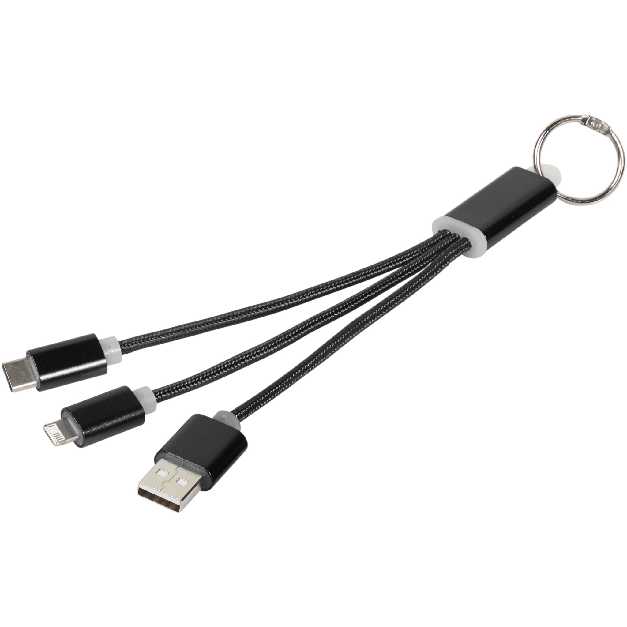 Металлический кабель для зарядки 3-в-1 с брелком, Сплошной черный