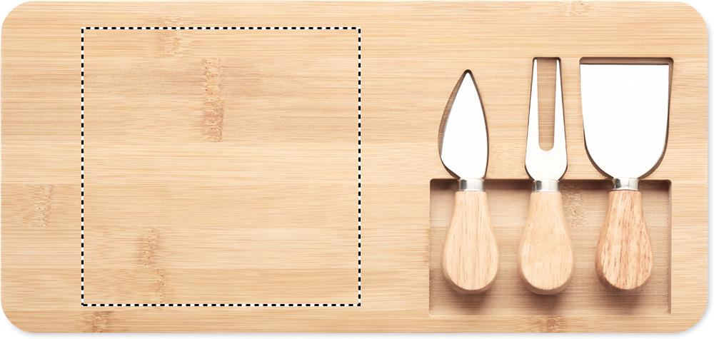 Бамбуковая сервировочная доска для сыра с 2 ножами и вилкой.
