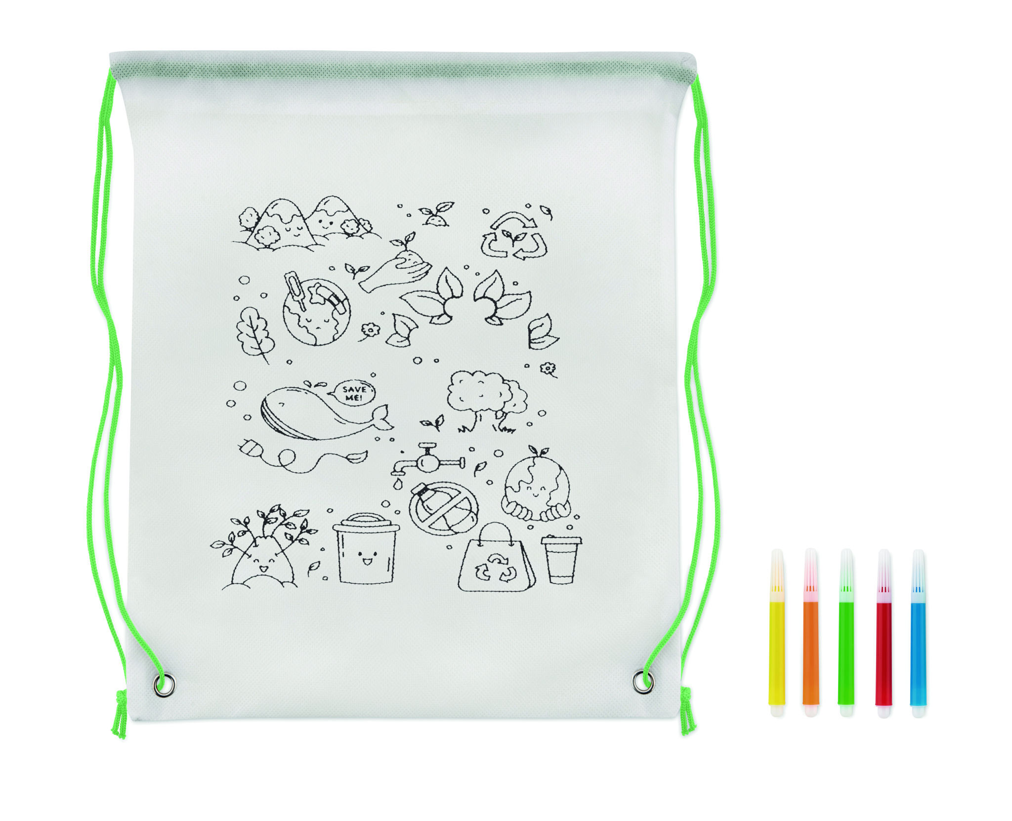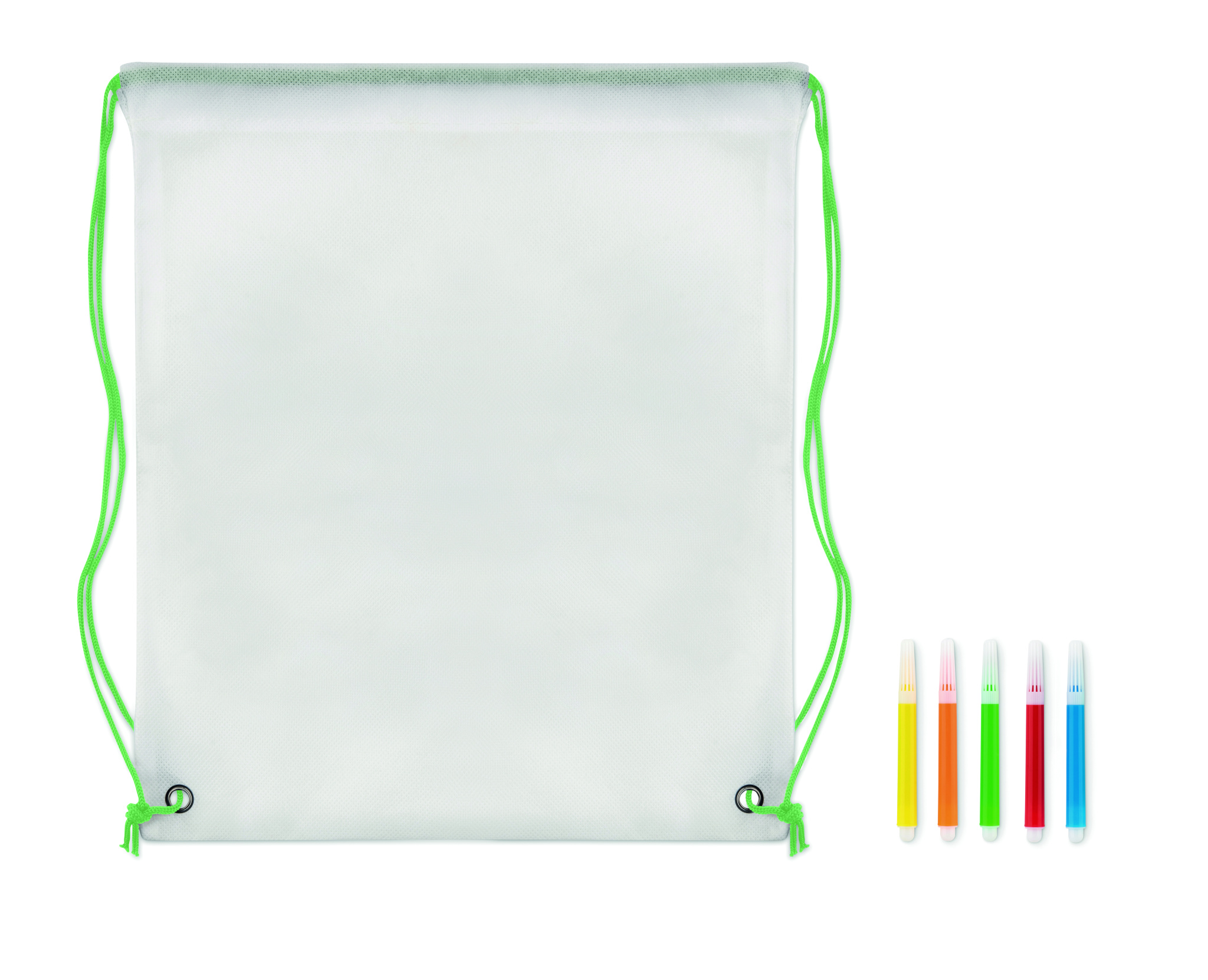 Нетканый мешок на шнурке с 5 маркерами. 80 гр / м².